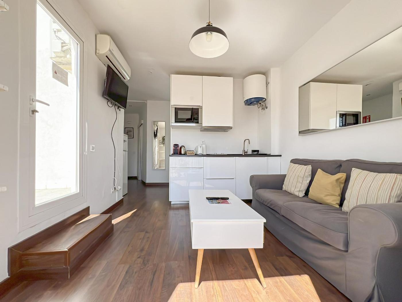 Estudio con cama extragrande. The well-fitted kitchen has a refrigerator, kitchenware, a microwave and a toaster. This air-conditioned studio features a private bathroom, a private entrance, a coffee machine as well as a terrace. The unit offers 1 bed.