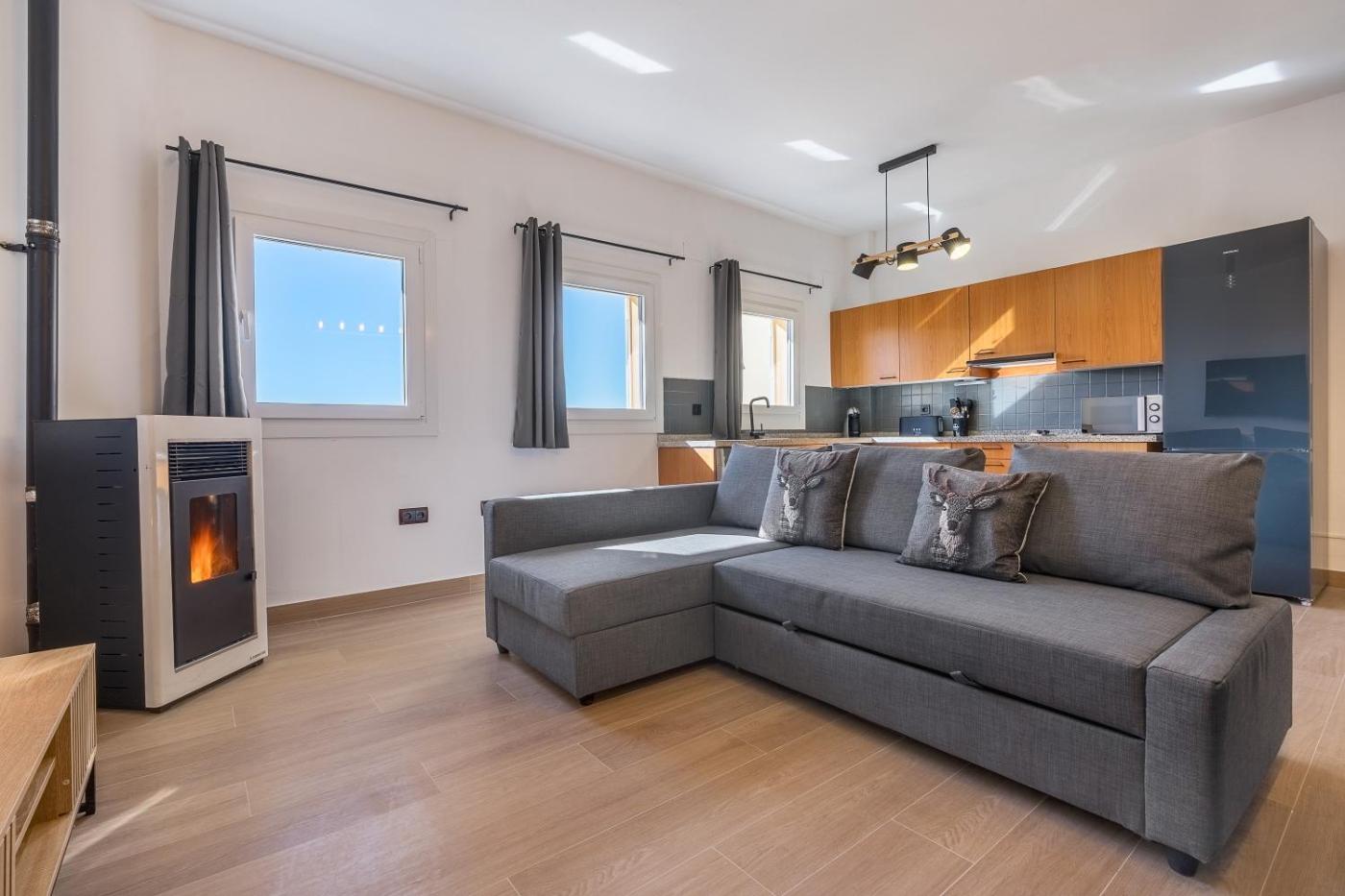 Apartamento de 2 dormitorios con vistas a la montaña. This apartments special features are the sauna and the fireplace. This spacious apartment comprises 1 living room, 2 separate bedrooms and 1 bathroom with a shower and free toiletries. The fully equipped kitchen features a dishwasher, kitchenware, a microwave and a toaster. The apartment provides a TV, a washing machine, a private entrance, a coffee machine as well as mountain views. The unit offers 4 beds.