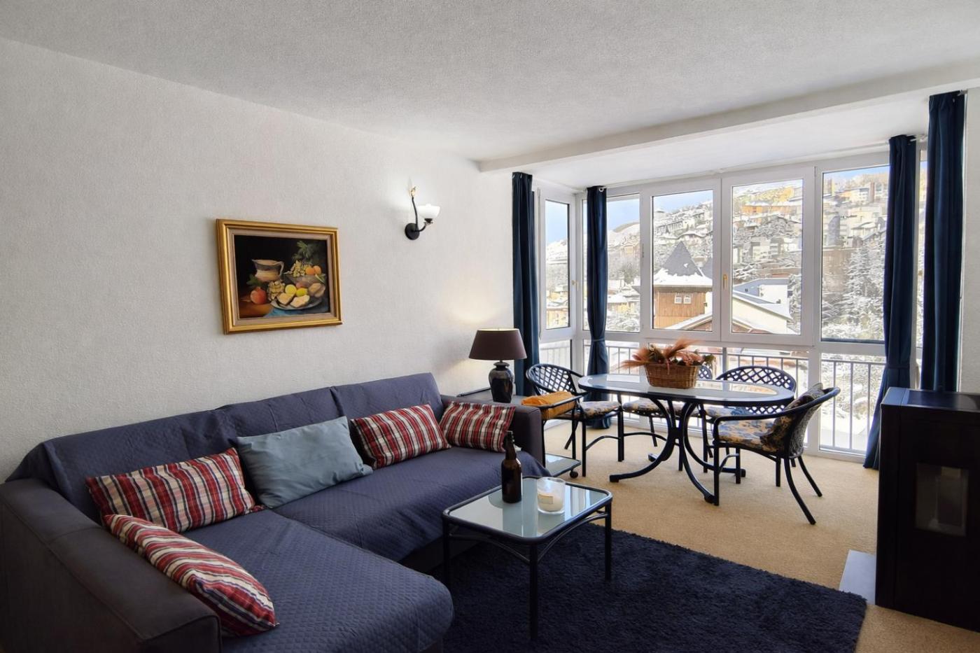 El apartamento cuenta con balcón y vistas a la montaña, y tiene 1 dormitorio, una sala de estar, TV de pantalla plana, una cocina equipada con nevera y microondas, y 1 baño con bañera.