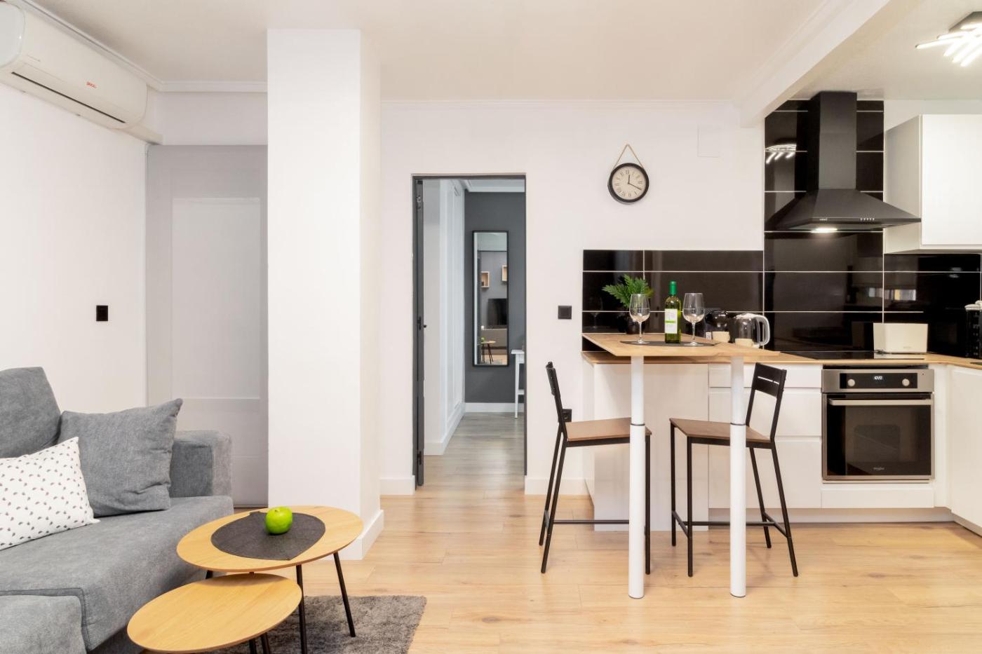 Apartamento de 1 dormitorio. This air-conditioned apartment features 1 living room, 1 separate bedroom and 1 bathroom with a shower. Guests can make meals in the kitchen that has a stovetop, a refrigerator, kitchenware and an oven. Boasting a terrace, this apartment also features a washing machine, a tea and coffee maker and a flat-screen TV. The unit has 2 beds.